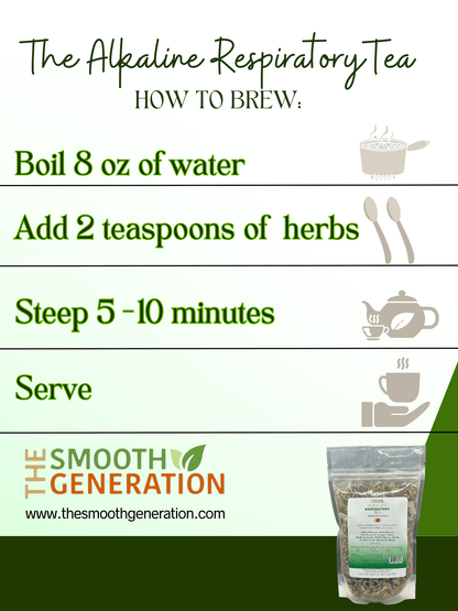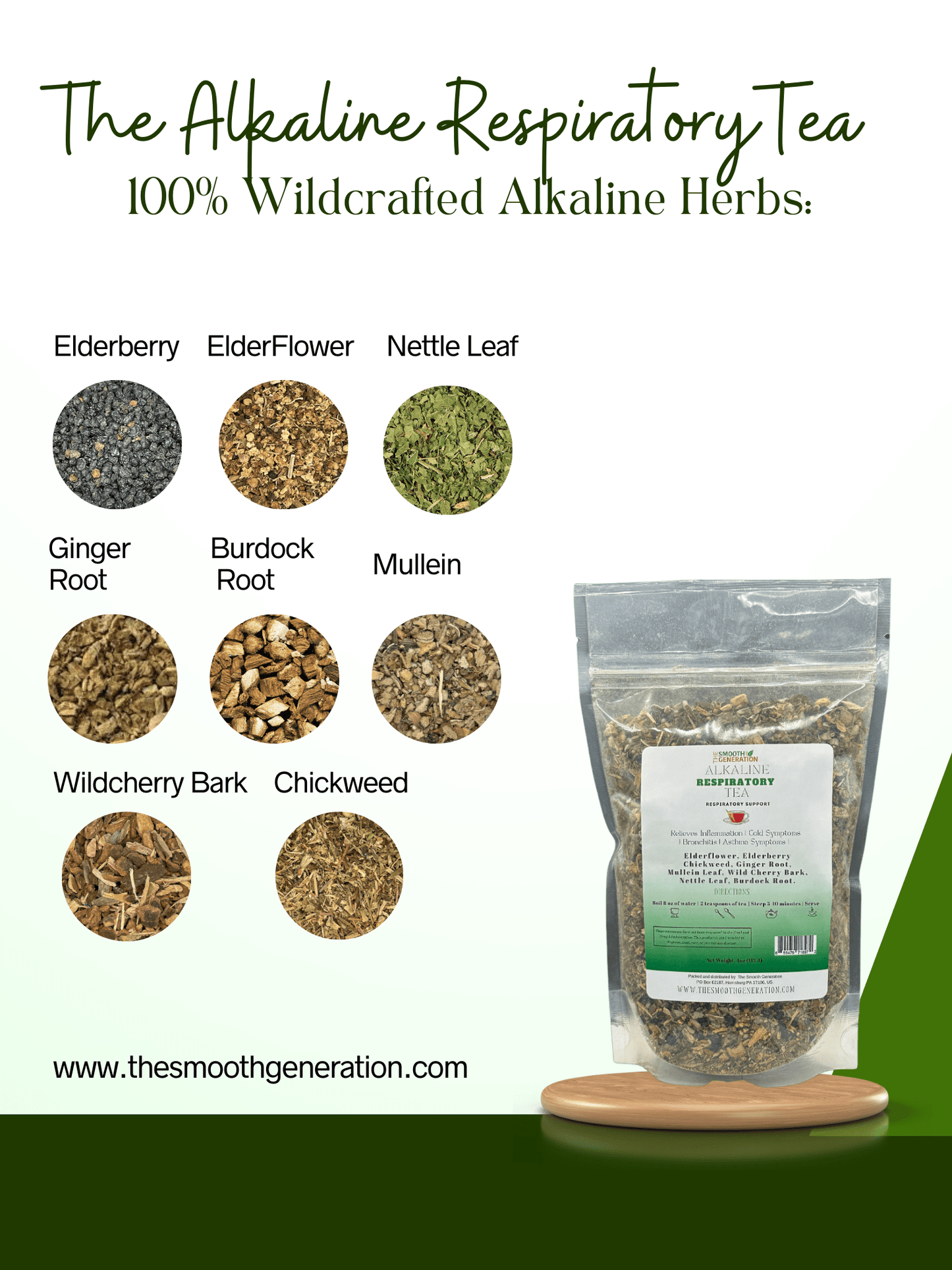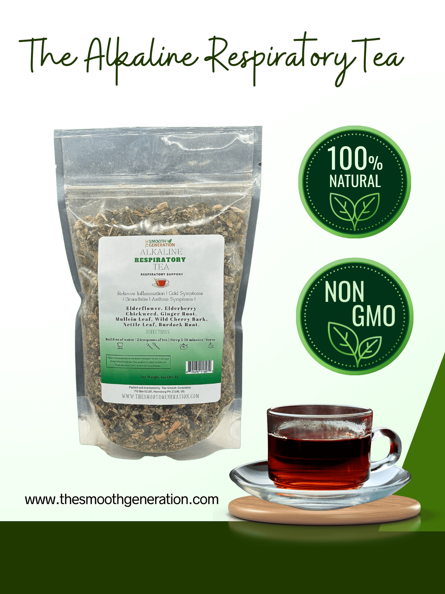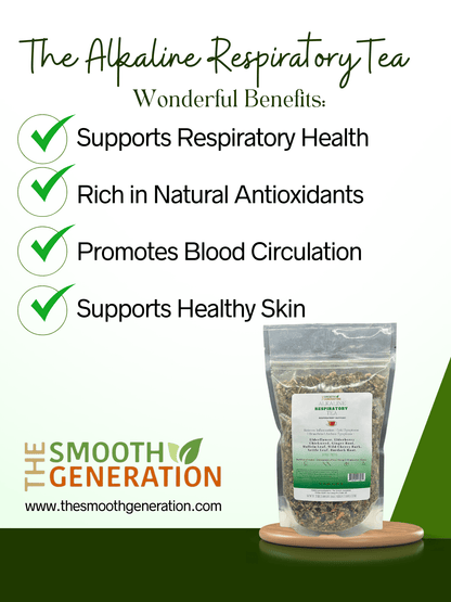 Alkaline Respiratory Tea is a proprietary fusion of 100% natural alkaline herbs, intentionally formulated to support lung health, respiratory balance, and overall breathing wellness. This soothing tea blend helps reduce bronchial inflammation, clear mucus from the airways, and promote easier breathing. Ideal for those seeking natural support for the lungs and immune system, especially during seasonal changes.
