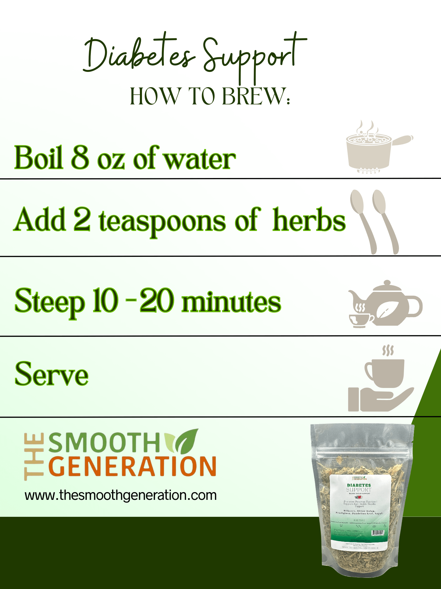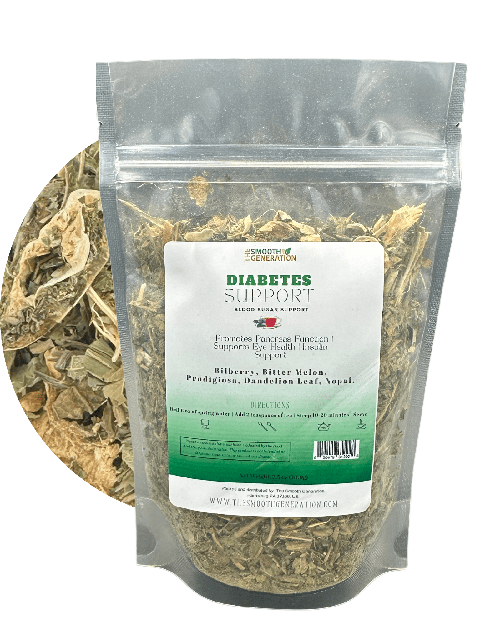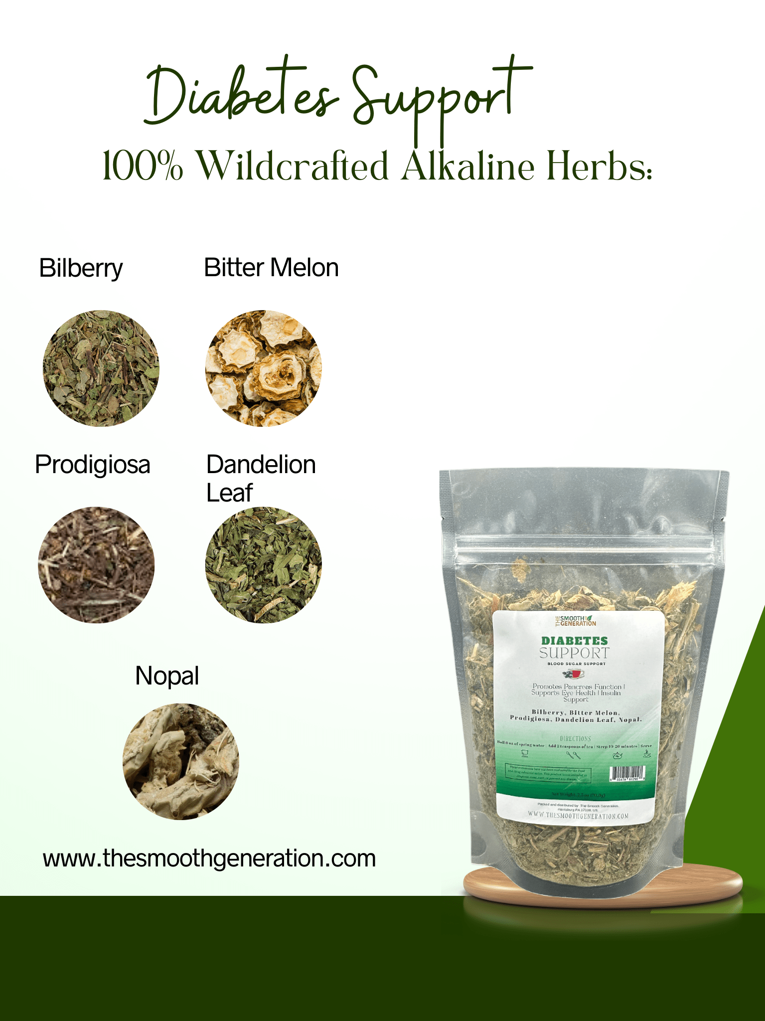 Diabetes Support Tea is a proprietary fusion of 100% natural alkaline herbs, intentionally formulated to promote healthy blood sugar levels, support pancreatic function, and aid metabolic balance. Rich in plant compounds and essential trace minerals like chromium, potassium, and magnesium, this nourishing blend helps the body maintain glucose stability while supporting overall wellness and vitality.